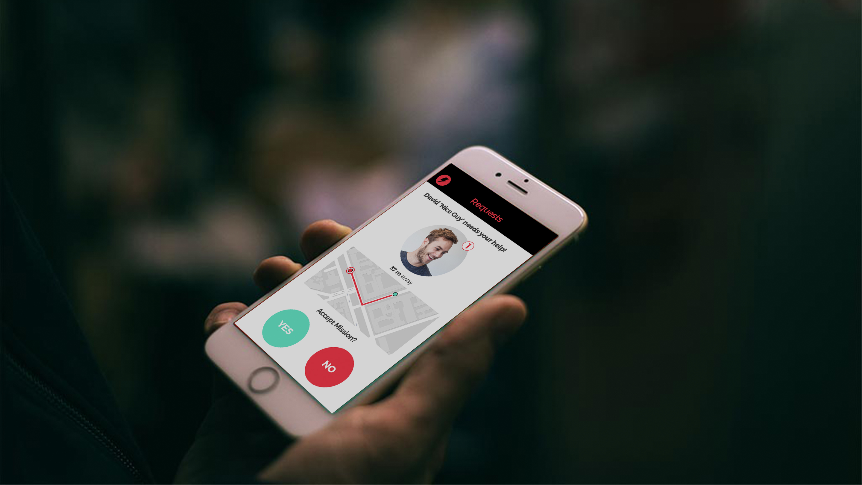 Charged is a concept for emergency battery loss. When running out of battery, the Charged app, lets you send out an SOS signal to fellow charged users around you, or even send it automatically just before the battery is drained. The app finds the closest user by distance, and notifies the person of your situation. The fellow user can now accept the request for help. When accepted, he will receive the location of the person in need. Since every emergency is different the solution will be determined when the meeting occurs at the site. Since two is better than one, and one charged device is better than none, survival is not far.