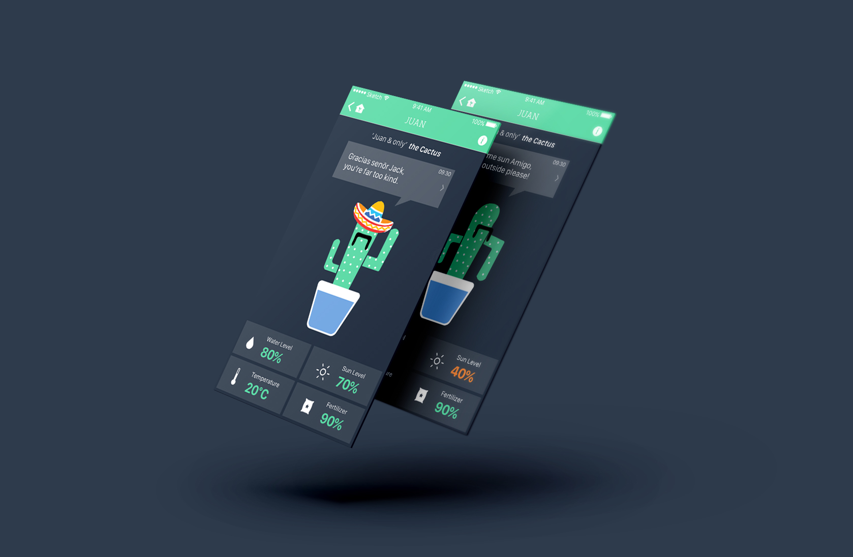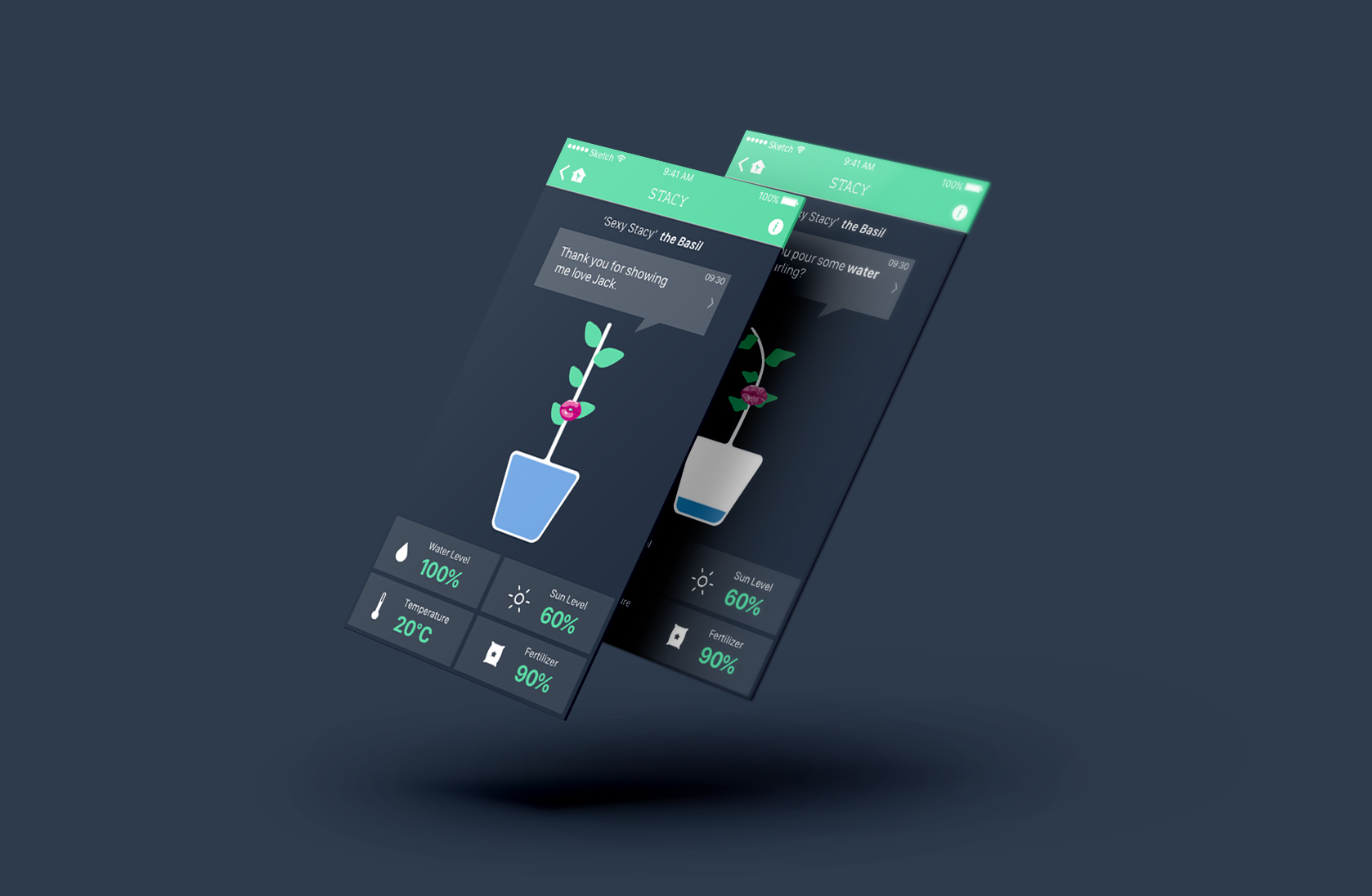 One of the teams initial insights was that a lot of people struggle to keep their plants alive. This lead to the idea of using data from the plants sensors to help the user take care of his plant. Personification of the plant was also introduced, so the plant could directly text it’s owner, providing a fun and meaningful way to learn about their plant’s needs, it can also be used as a teaching tool for beginners as well as kids.