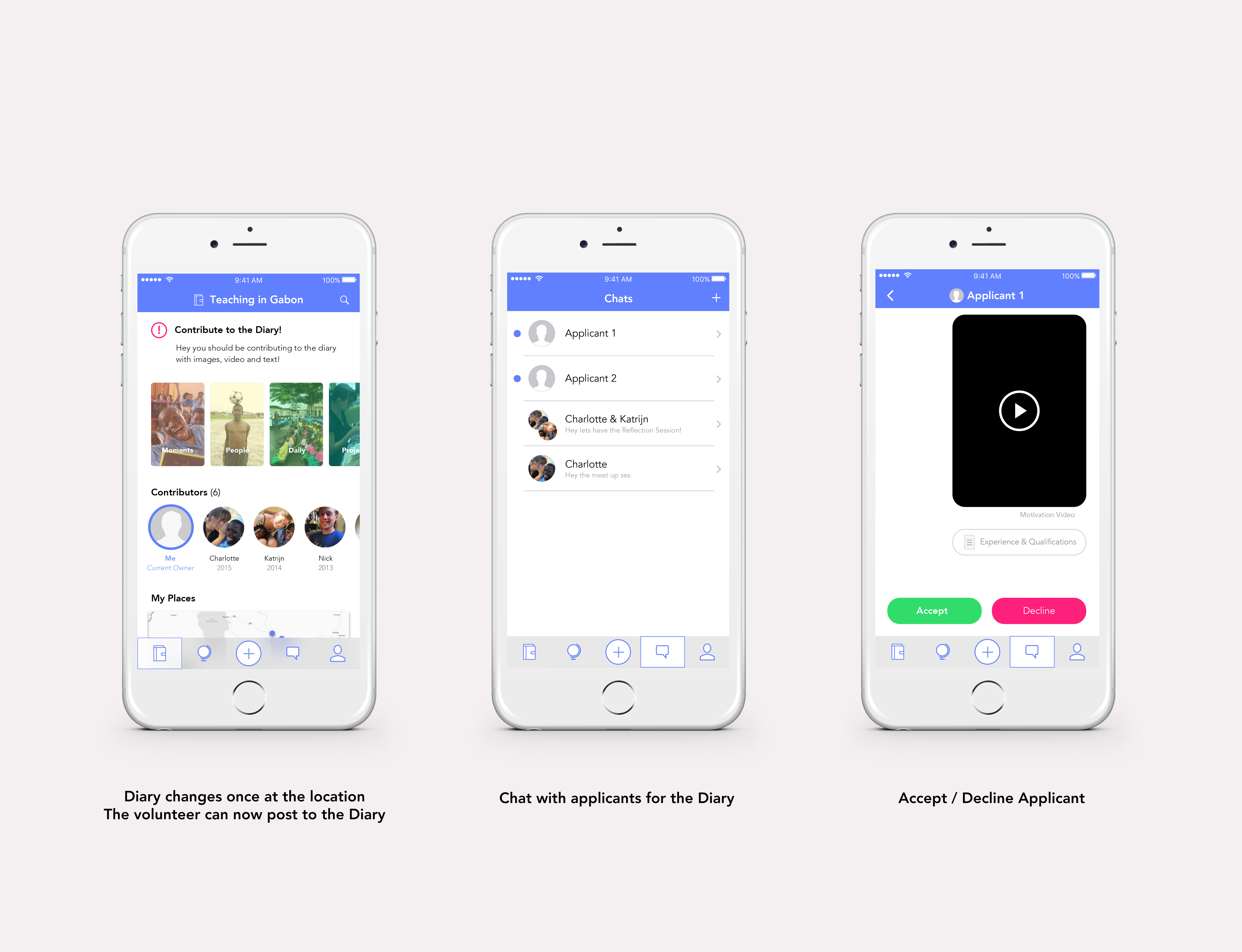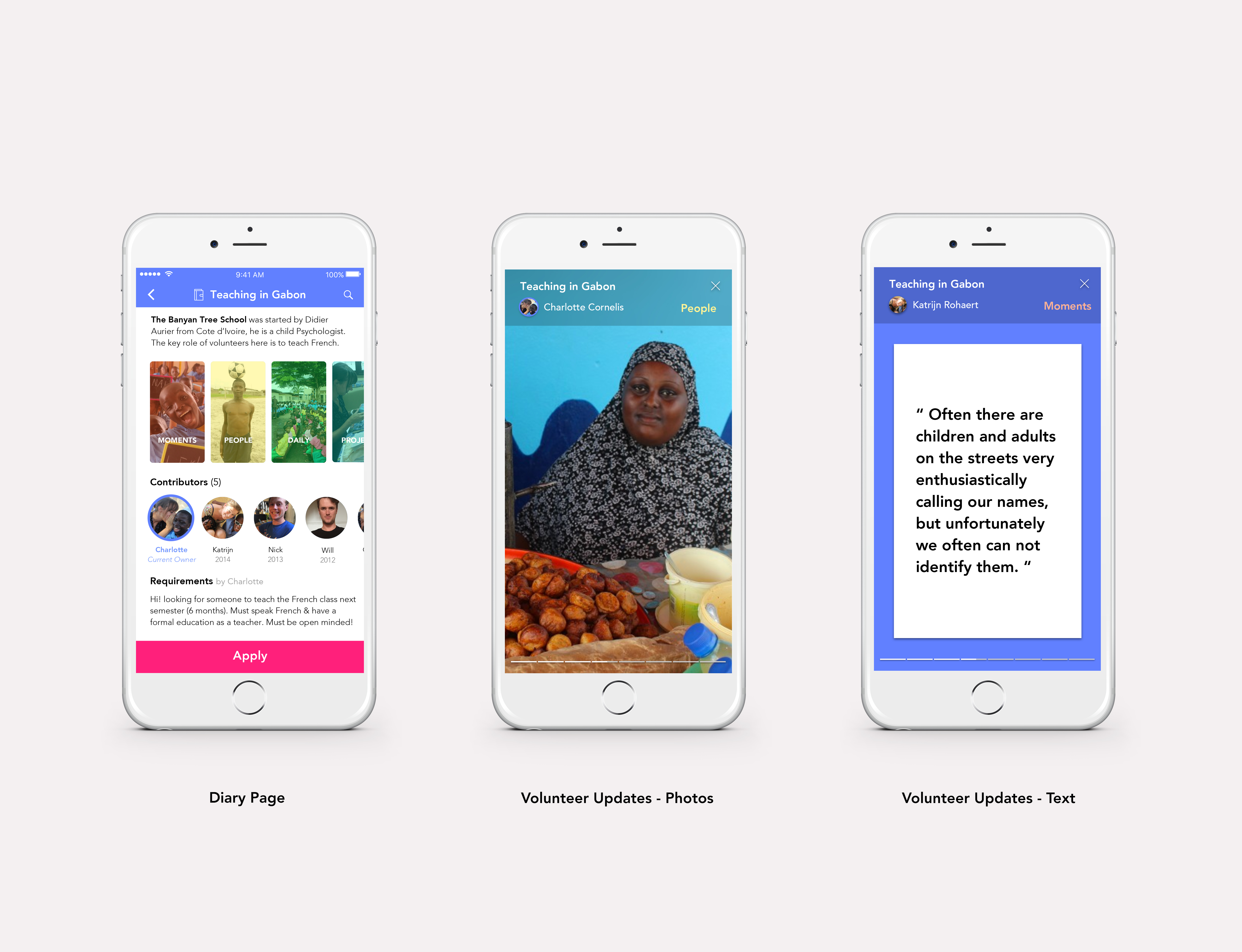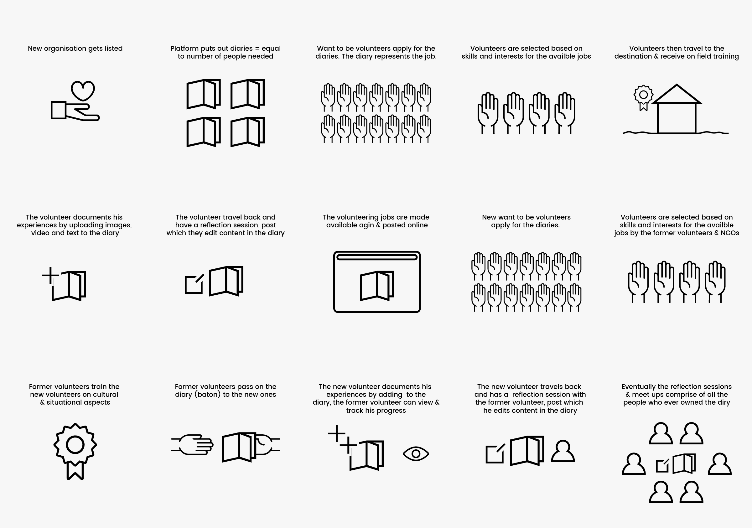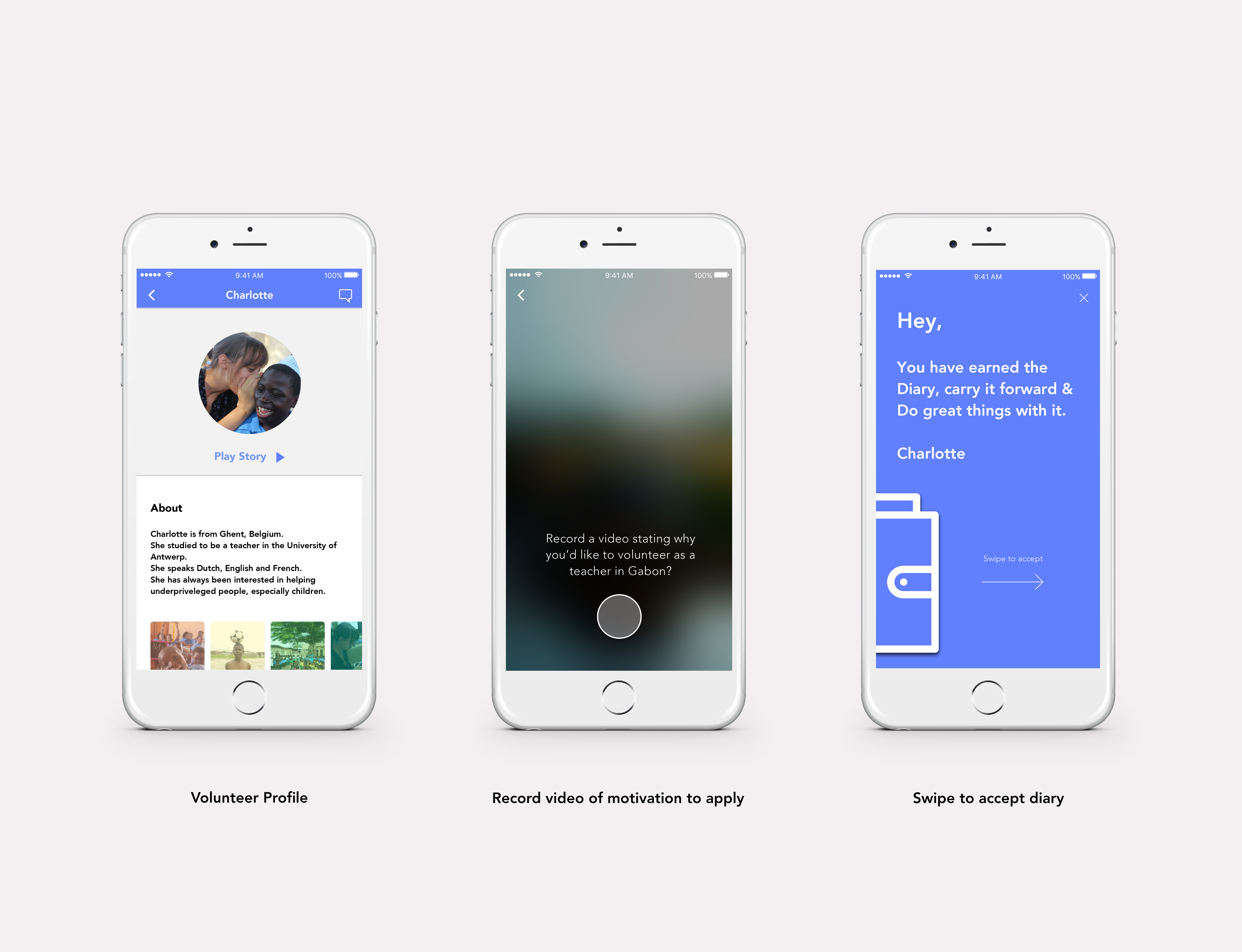 Each volunteering job is posted as a digital ‘Diary’. The to be volunteers are chosen based on their skill sets and interests. Once at the organization the volunteer posts images, videos and text of their experience on the diary. Want to be volunteers can follow the diary and apply for one that interests them. Once the current volunteer returns from the organization he can choose the ideal candidate to carry his diary forward and hand it over. In case the organization is an unethical one he can flag it and help create awareness. This process continues, helping create transparency in the volunteering experience.