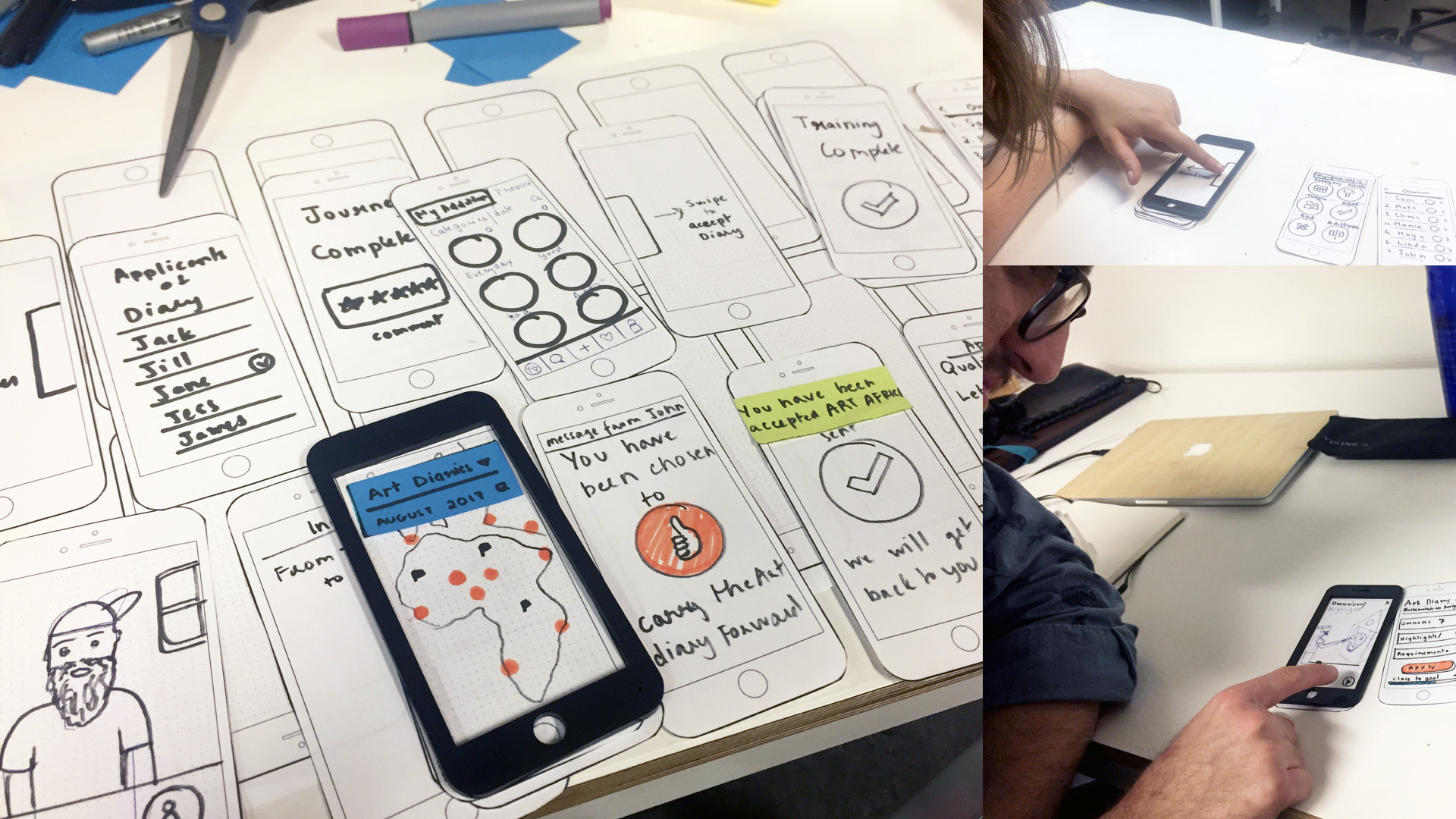 Paper Prototypes were created in order to develop the workflow and user experience of the app.